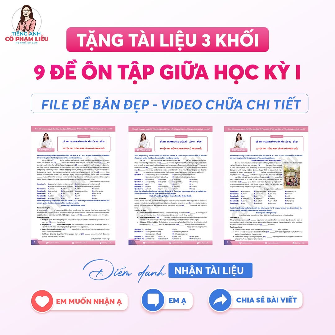 🎁 TẶNG 2K8/2K9/2K10 TỔNG 9 ĐỀ ÔN TẬP THI GIỮA KỲ 1 – BIÊN SOẠN CÔ PHẠM LIỄU